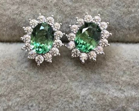 Oval Shape Green Crystal Earrings Women Fashion Jewelry Zircon Stud Earring